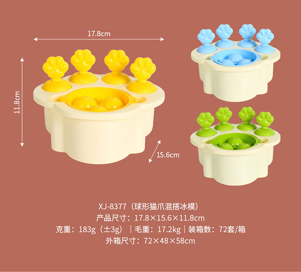 Size: HH-XJ8377(球形貓爪):178*156*118mm