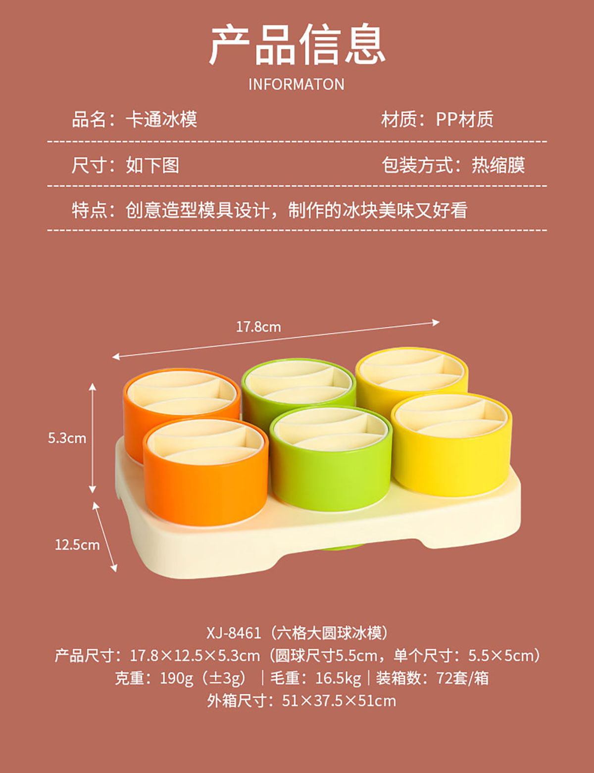 HH-XJ8461(六格大圓球):178*125*53(圓球直徑55mm 單個尺寸:55*50mm)