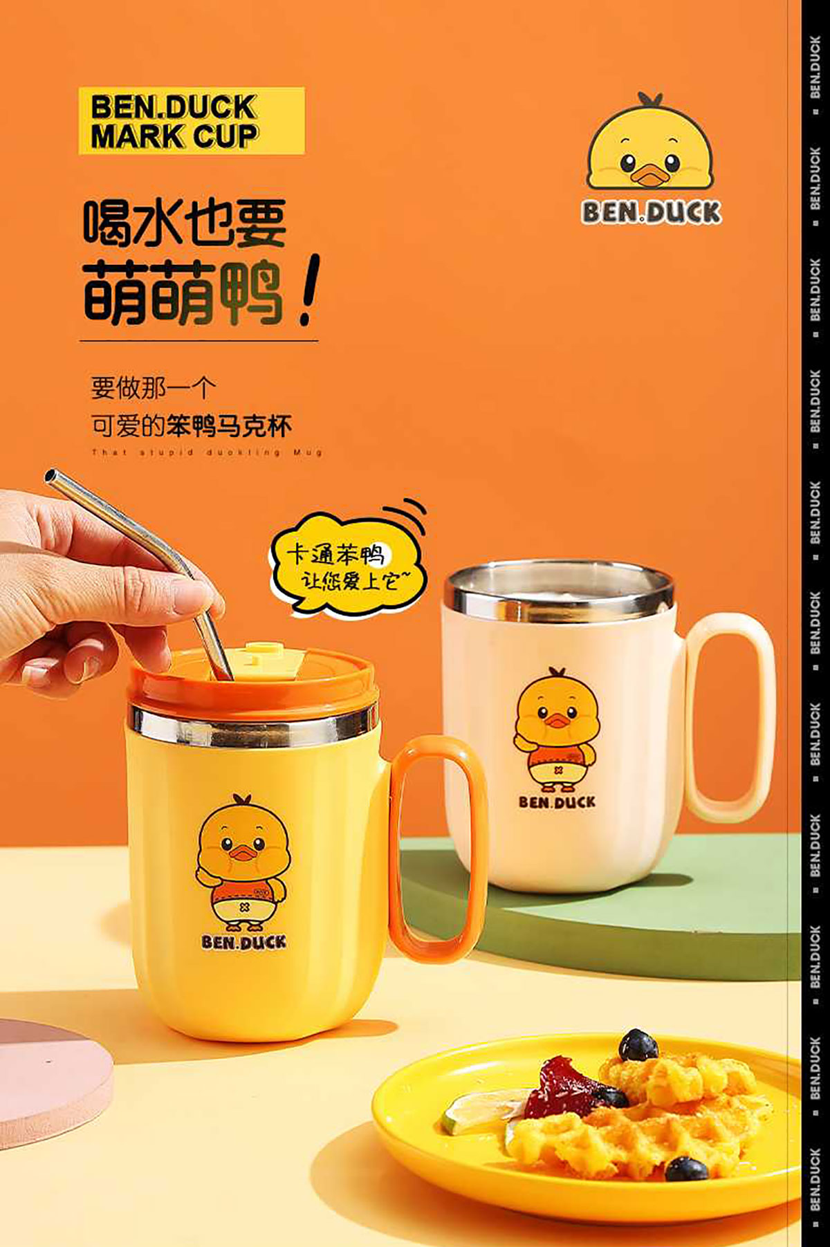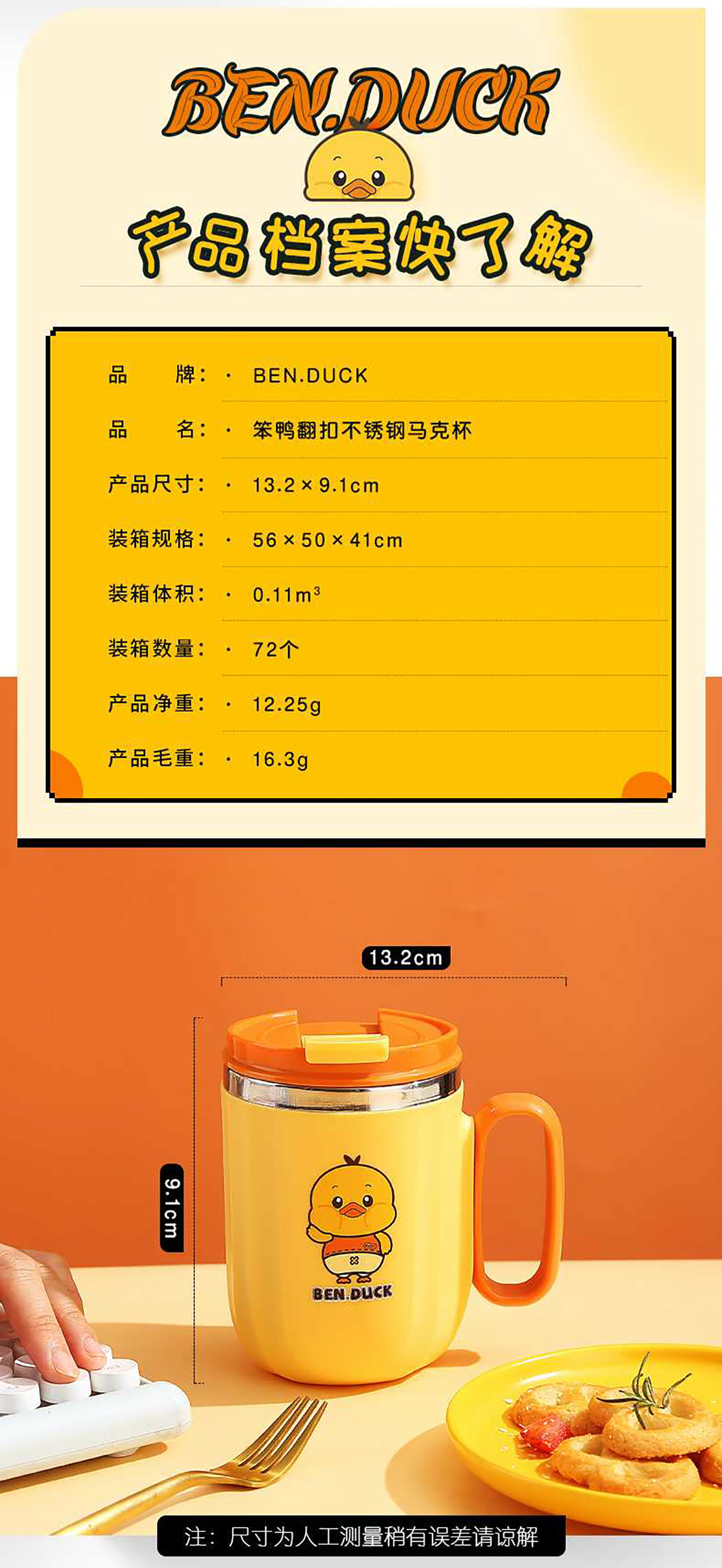 400ml笨鴨304不銹鋼翻扣保溫杯(帶手柄)