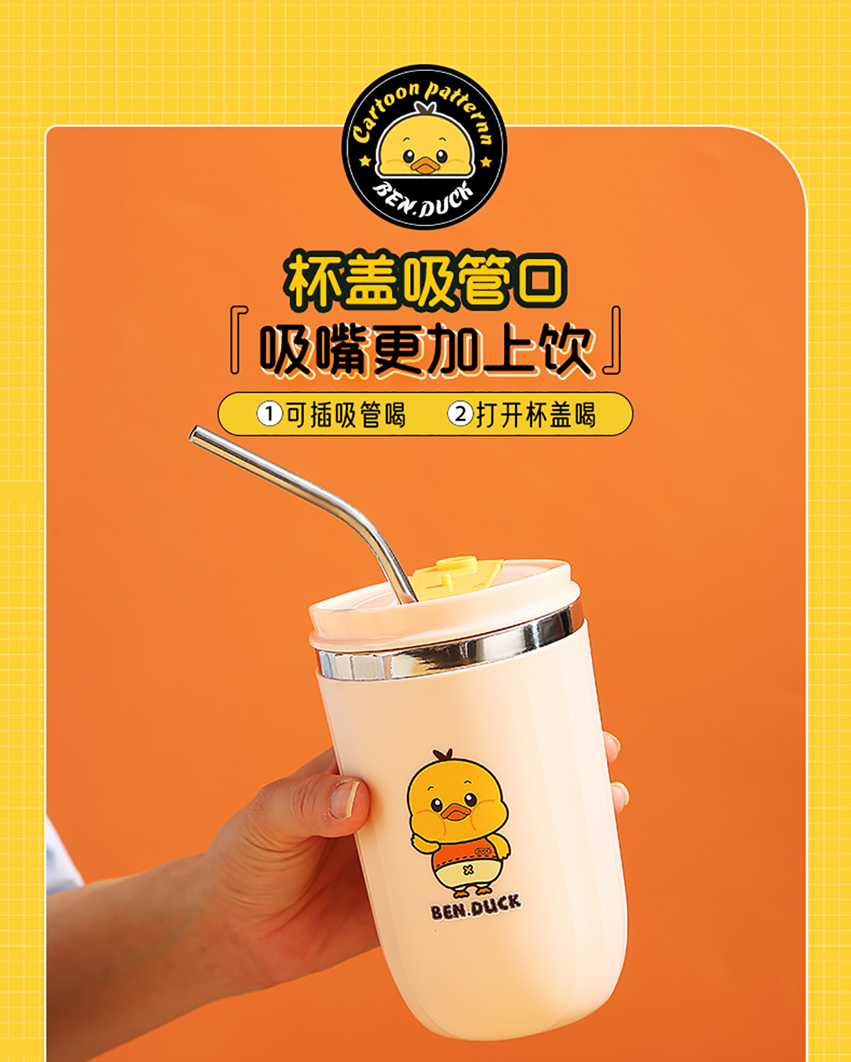 450ml笨鴨304不銹鋼翻扣保溫杯