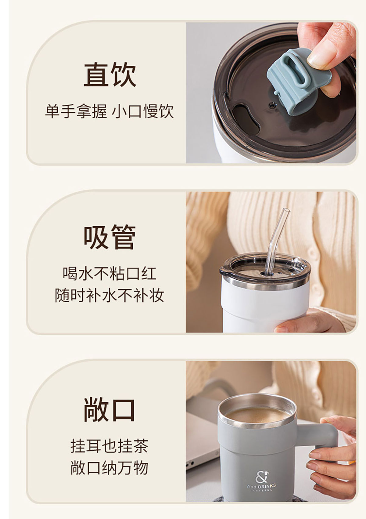 竹節(jié)咖啡杯無柄/帶柄450ml