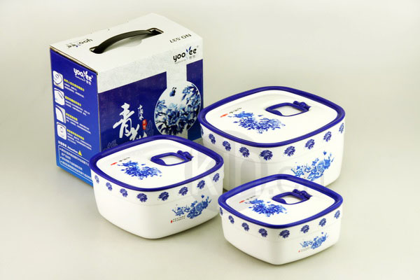 青花正方形保鮮盒三套莊