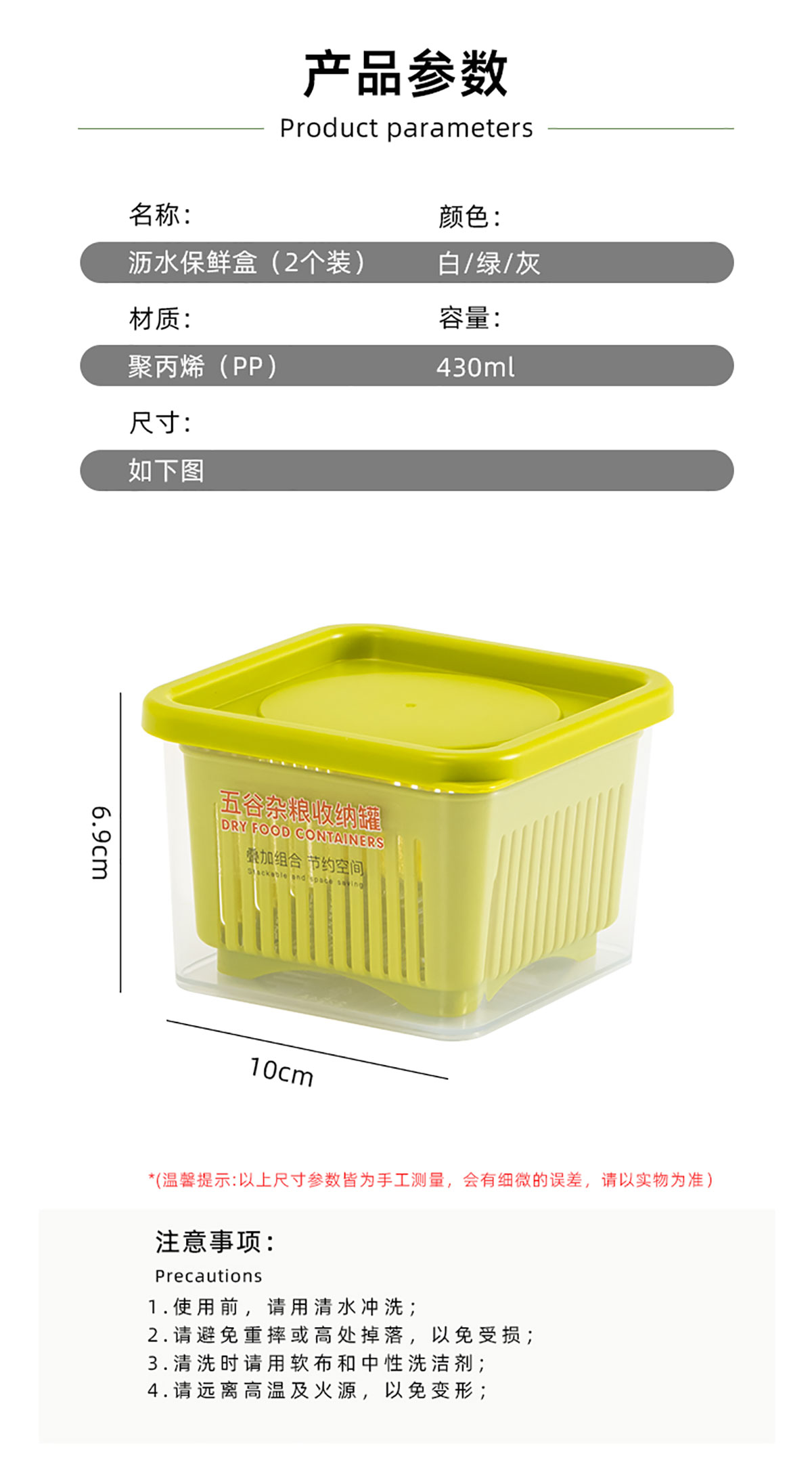 Size: 100*100*69mm/430ml×2