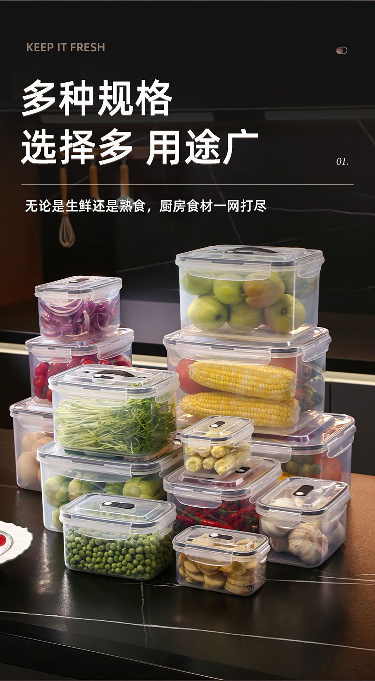 三件/四件/五件/六件/七件/九件/十一件套手提透氣密封保鮮盒