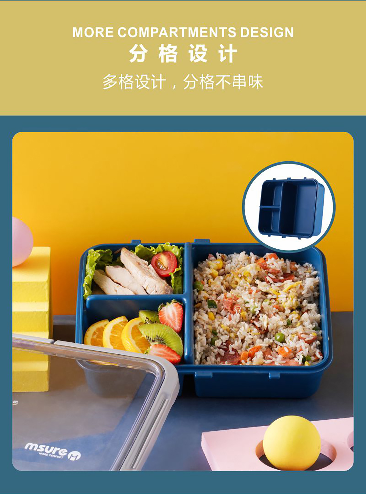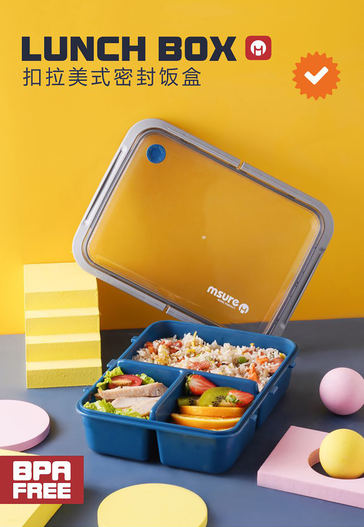扣拉美式密封飯盒(三格)1.5L