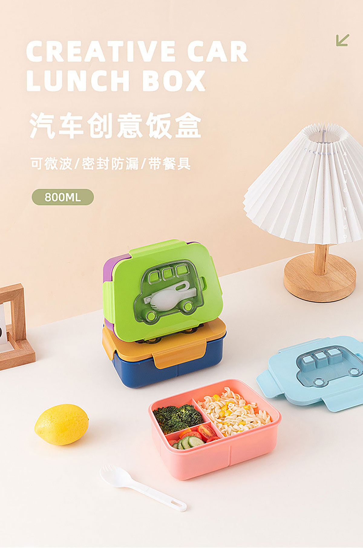 創(chuàng)意可愛汽車小飯盒800ml