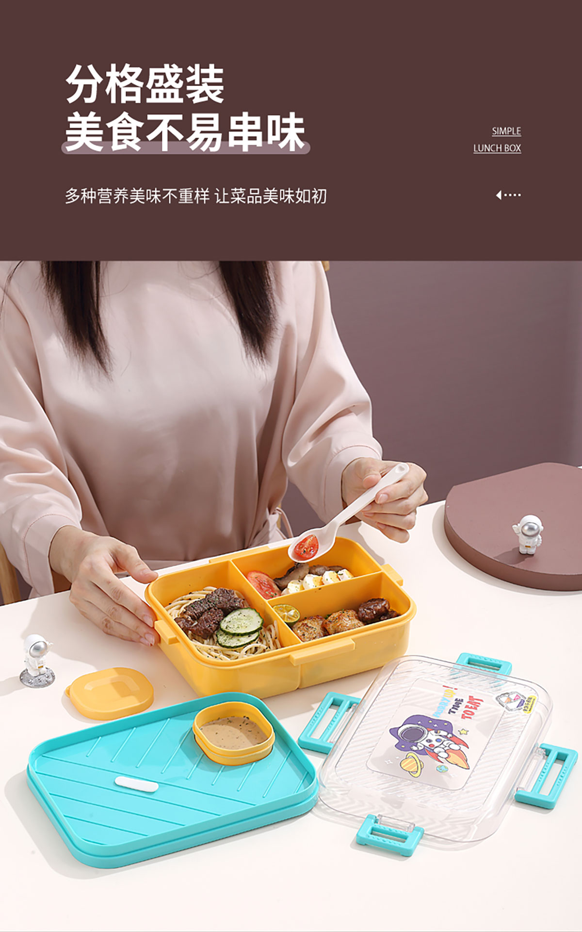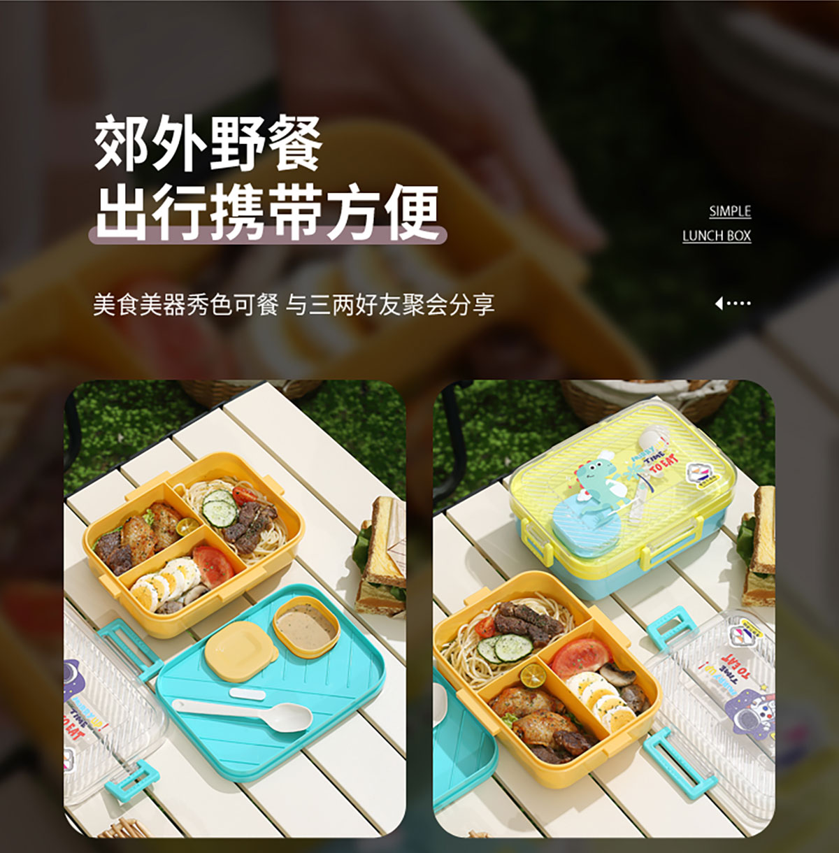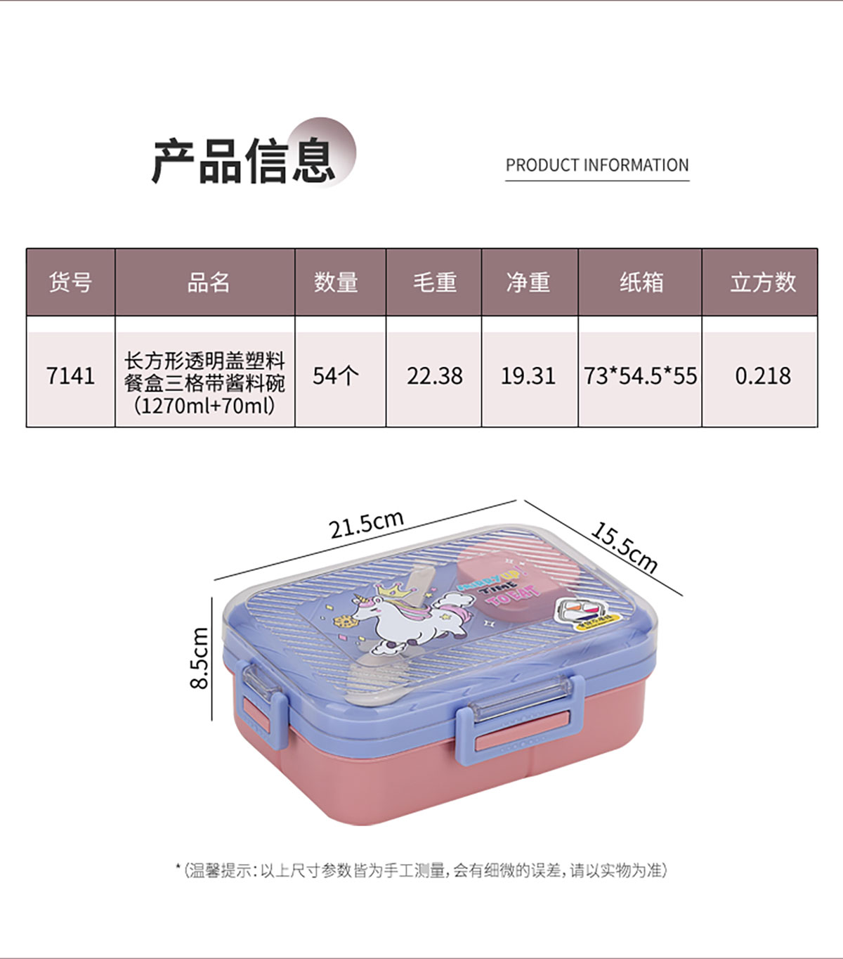 透明蓋塑料飯盒三格1270ml+70ml