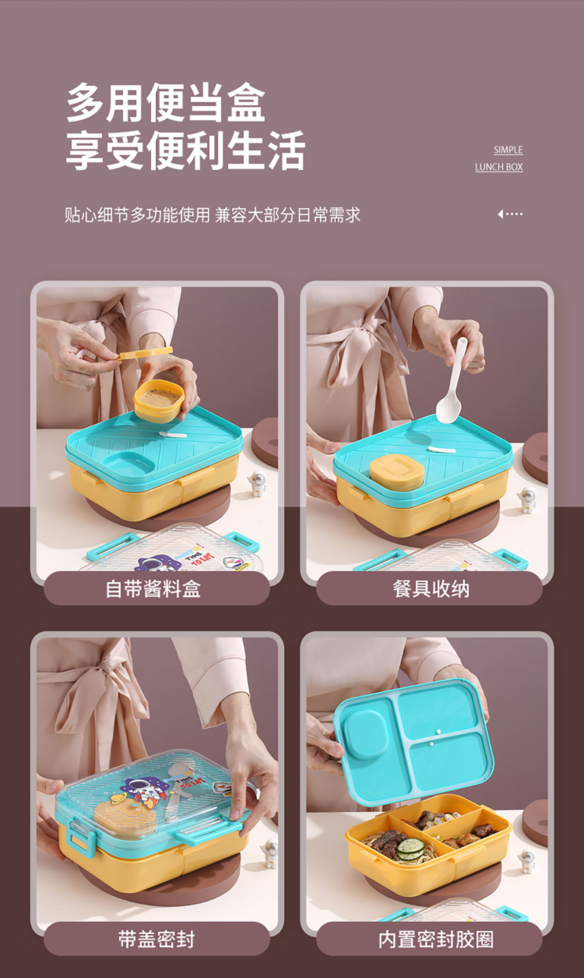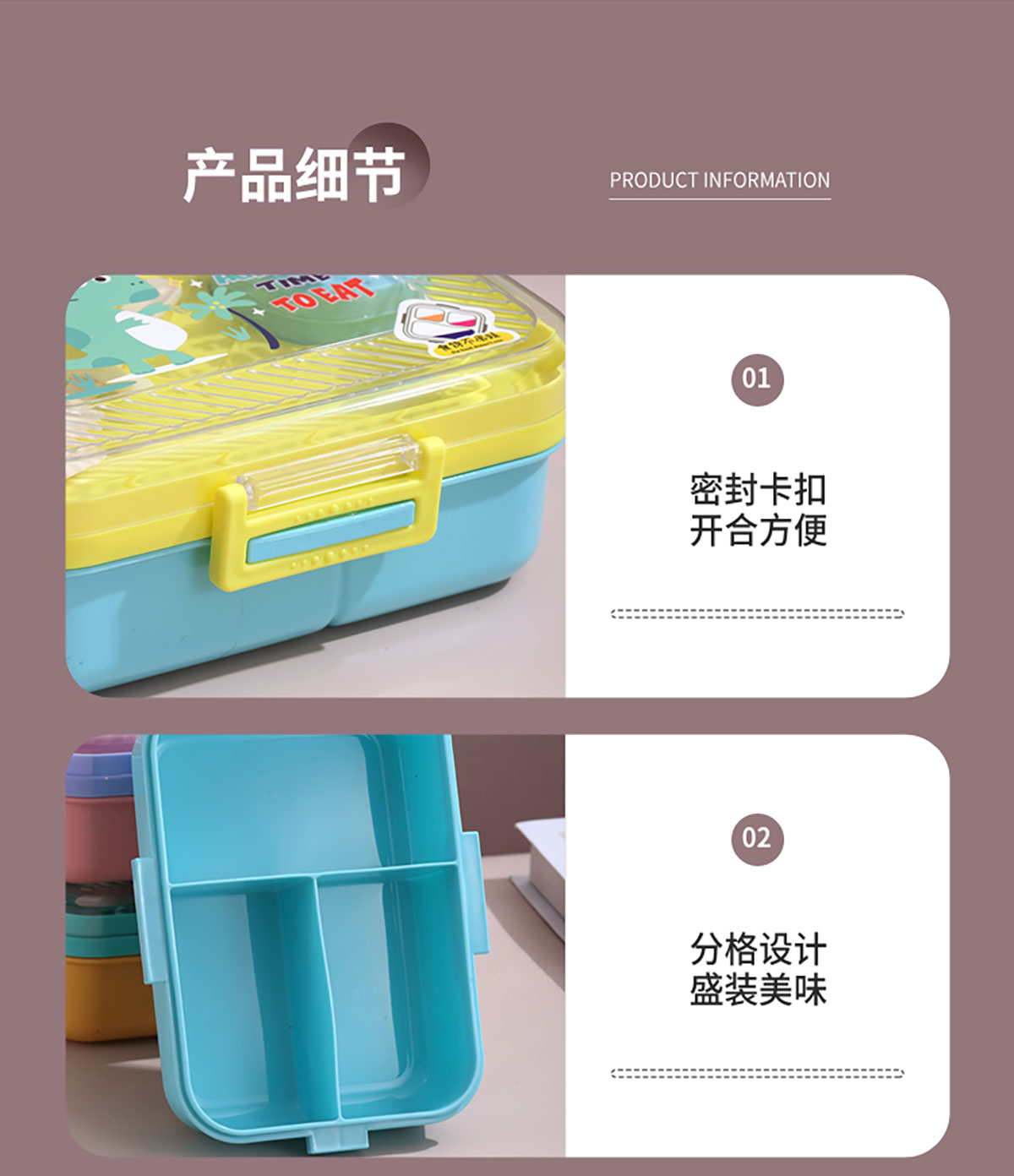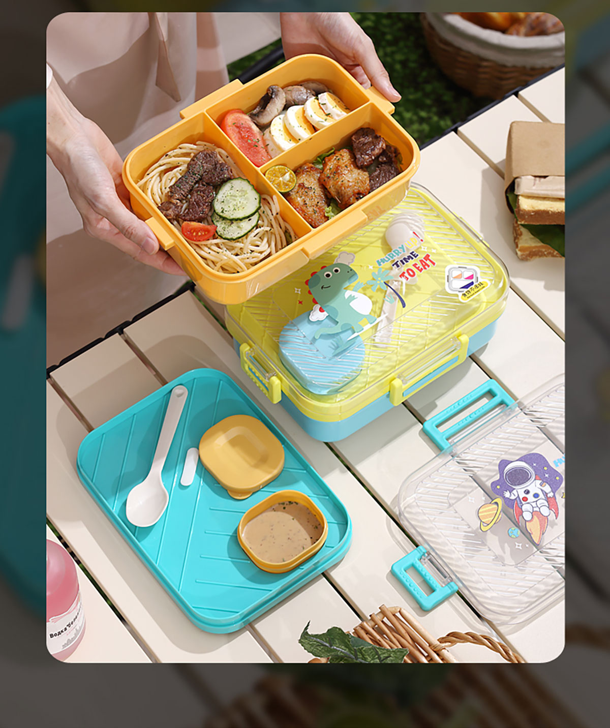透明蓋塑料飯盒三格1270ml+70ml
