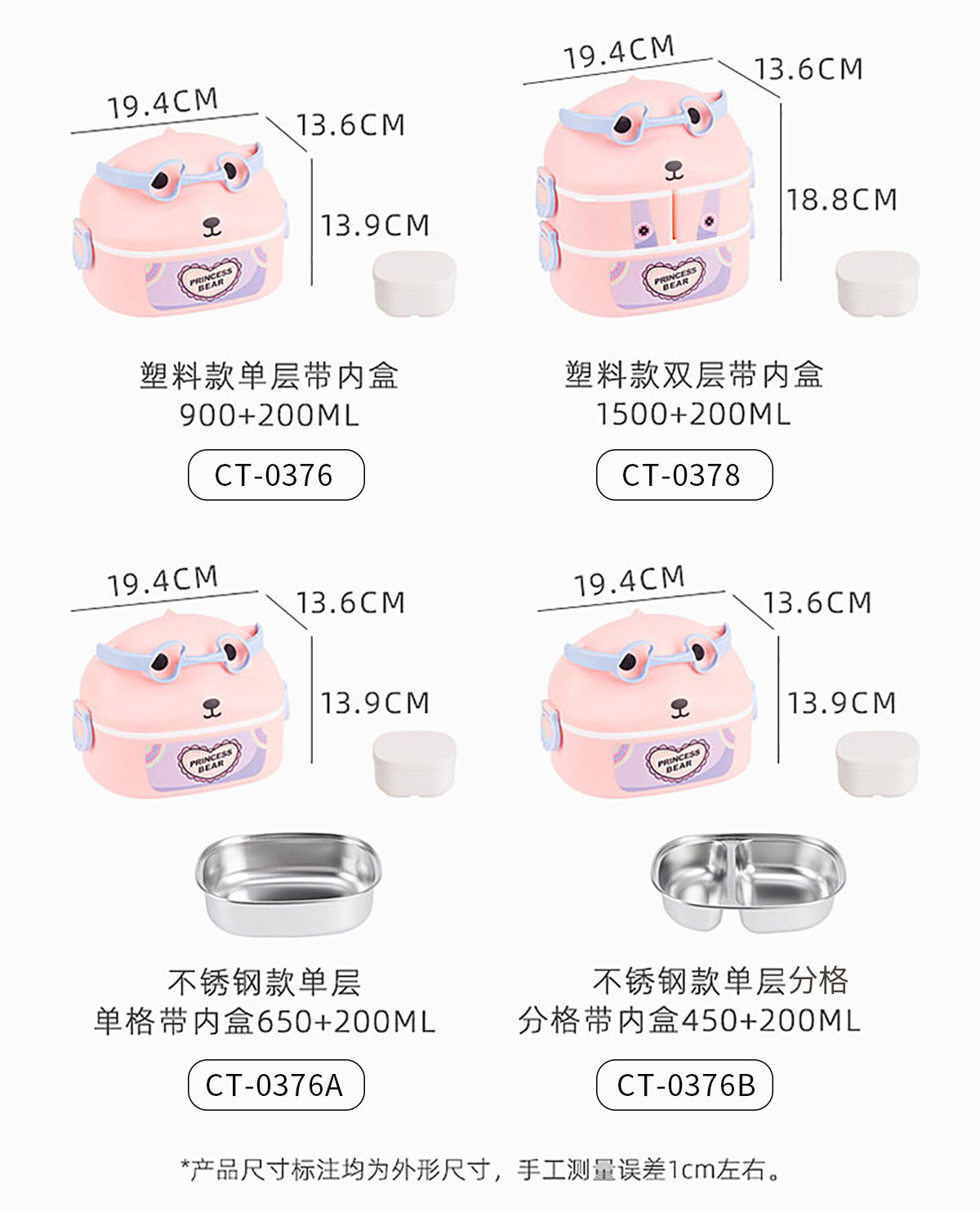 CT-0376(PP款單層+盒):194*136*139mm