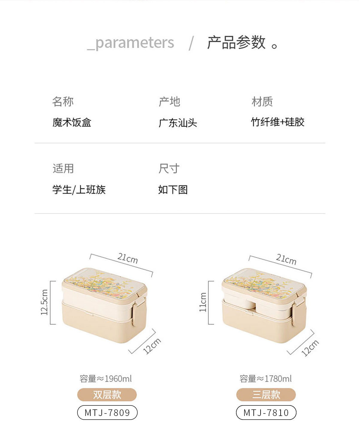 Size: MTJ-7809(二合一雙層):210*120*125mm/1200+760ml