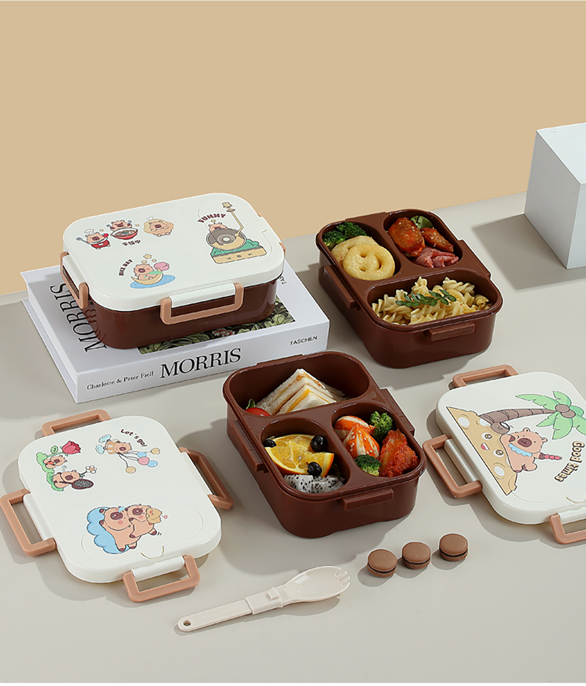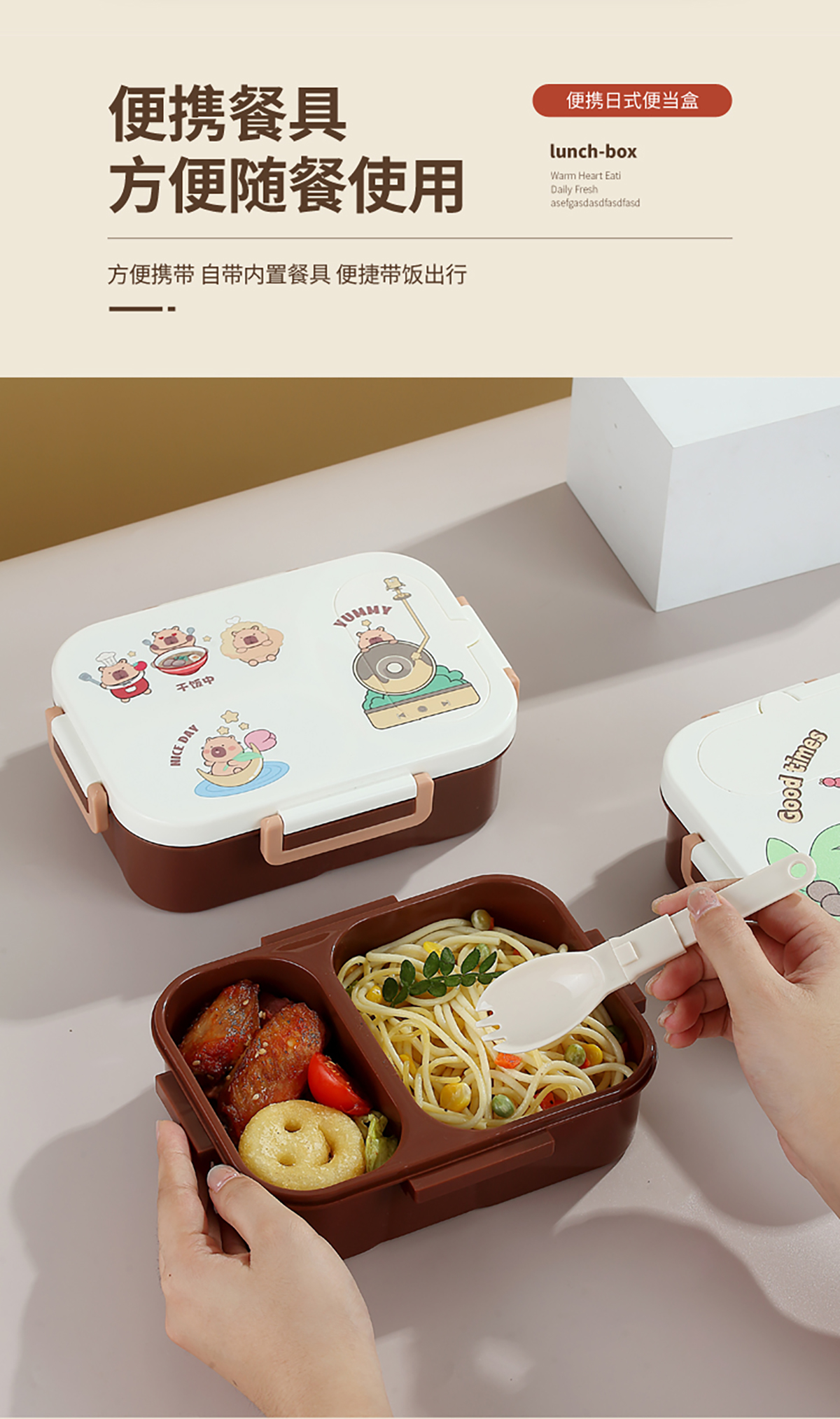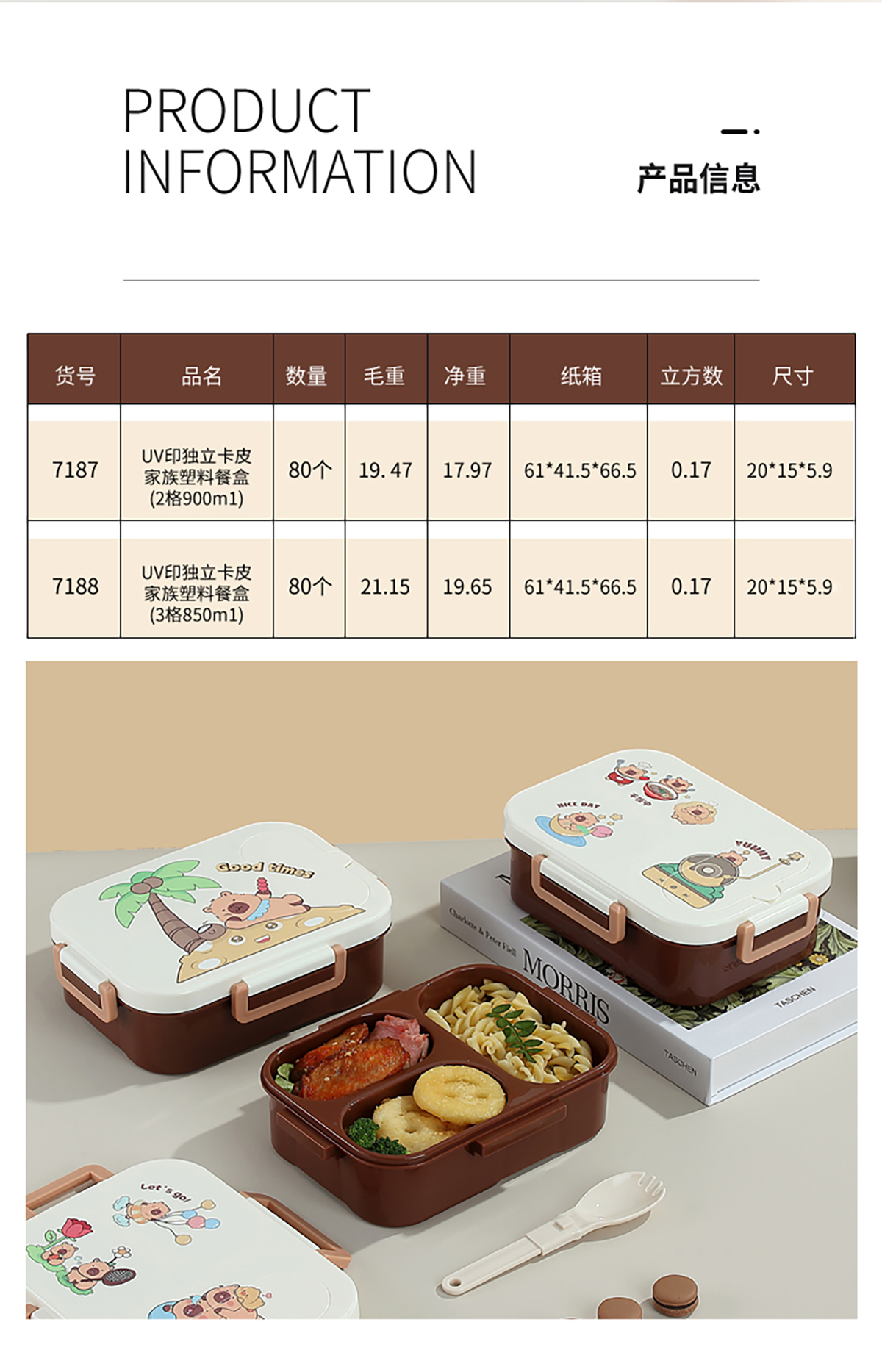 UV獨立密封卡皮家族塑料餐盒2格900ml/3格850ml (配PP折疊湯勺)