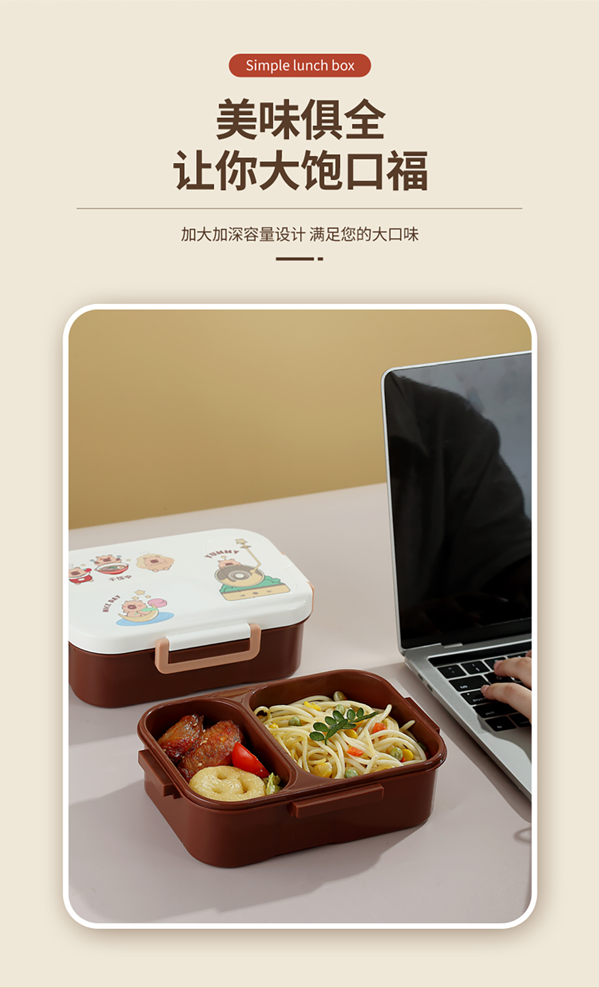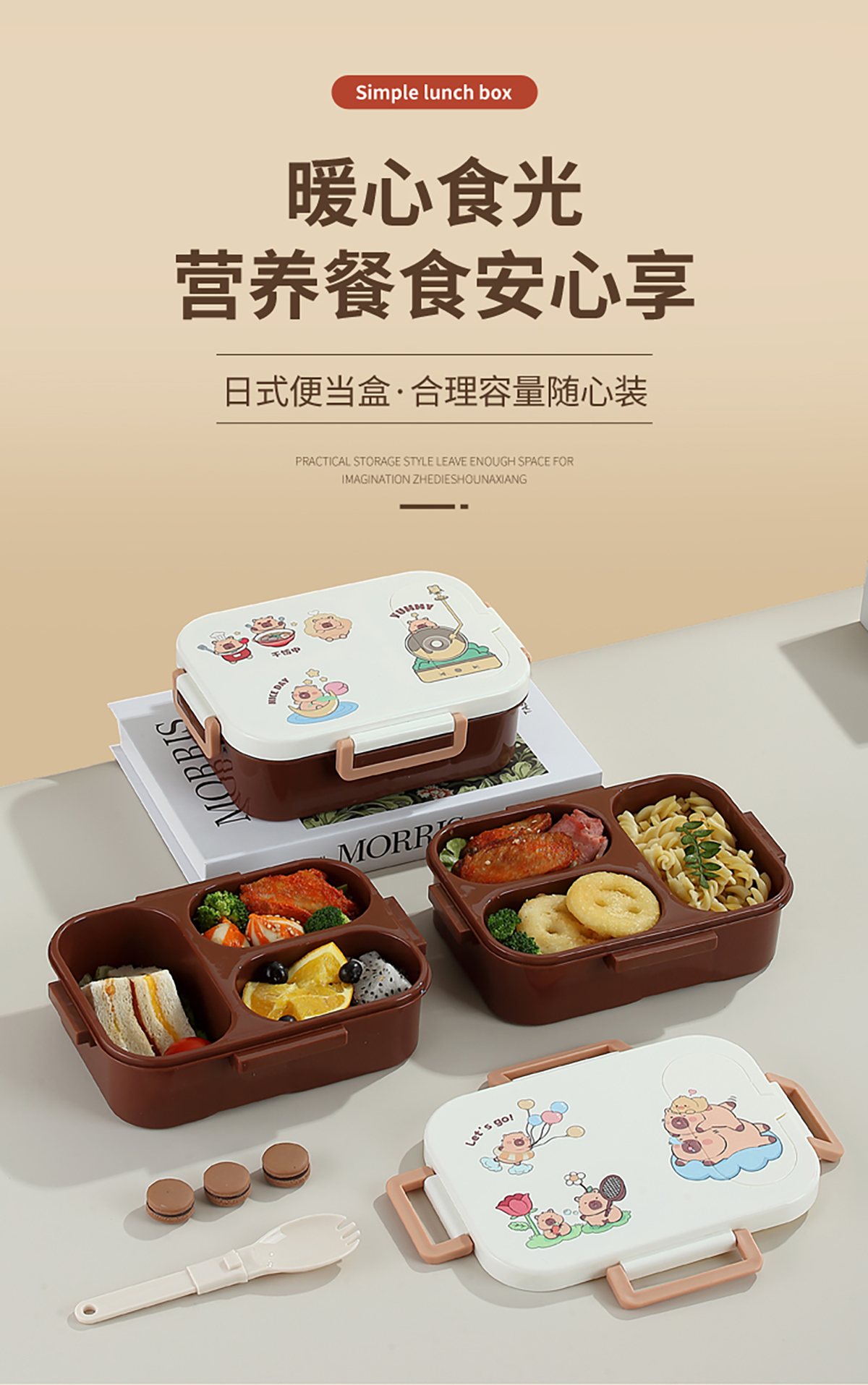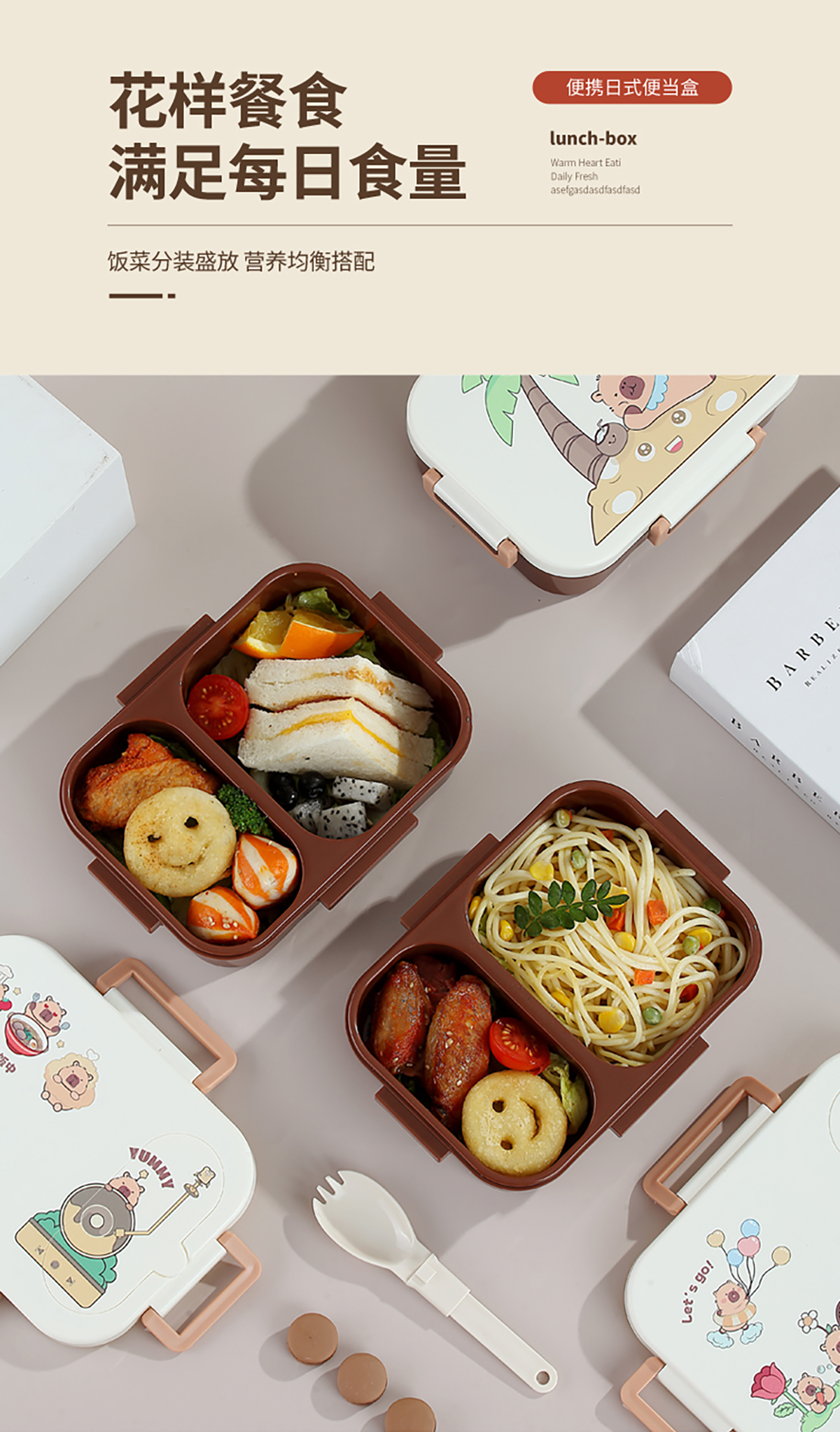 UV獨立密封卡皮家族塑料餐盒2格900ml/3格850ml (配PP折疊湯勺)