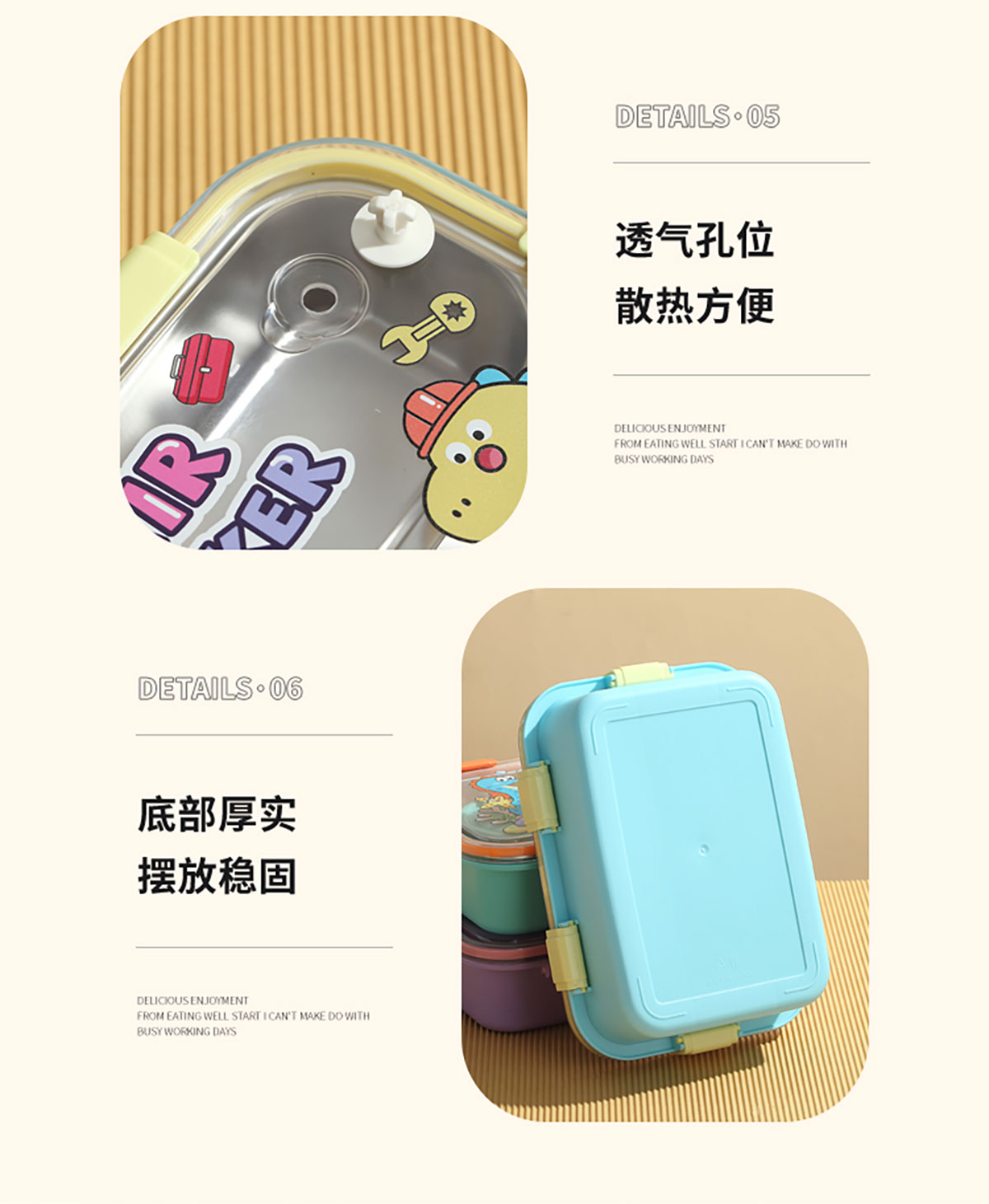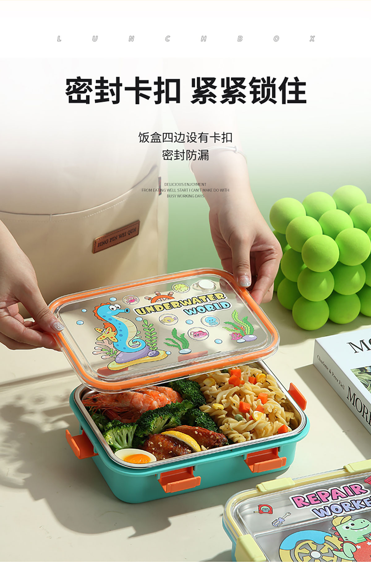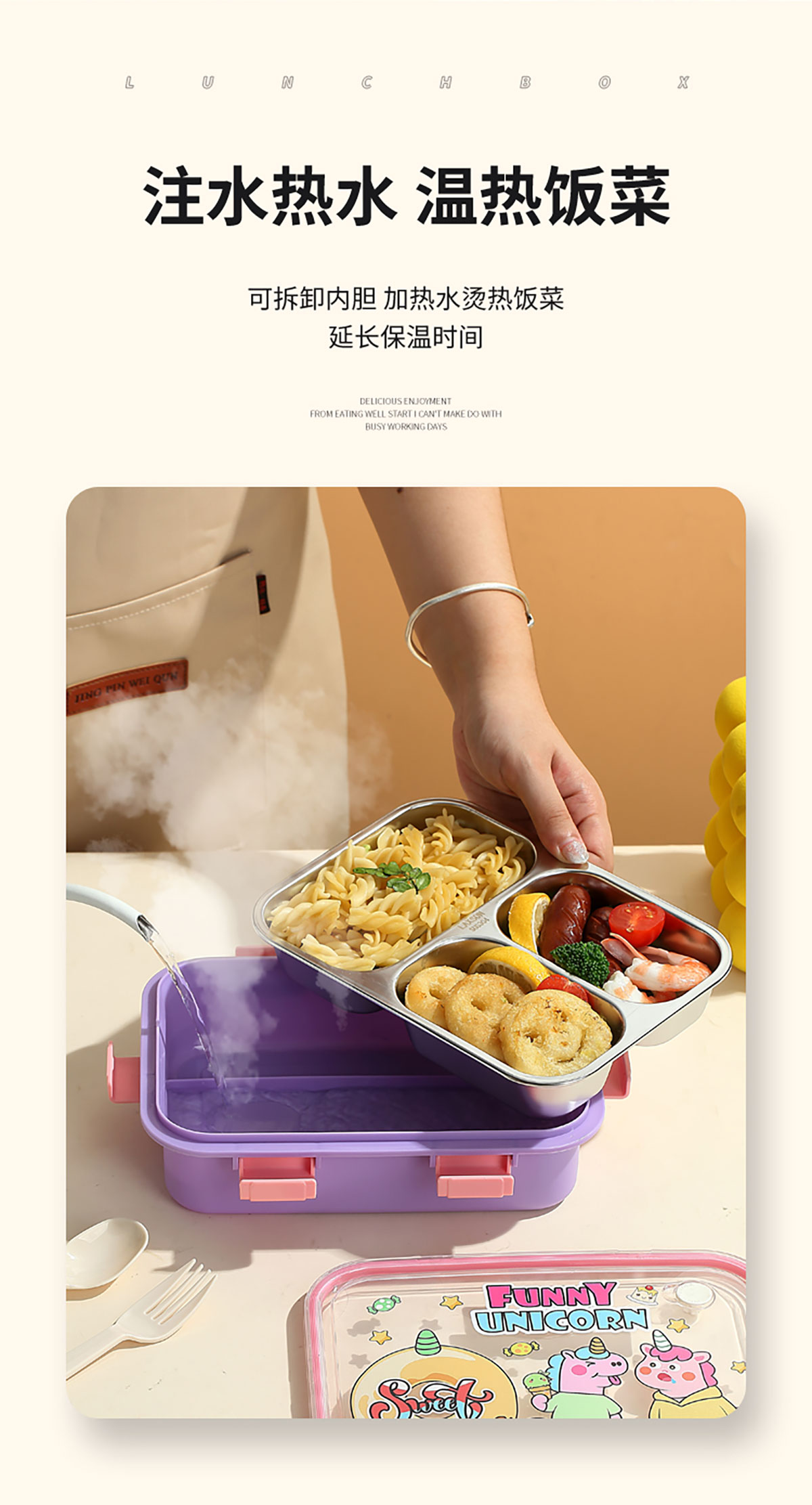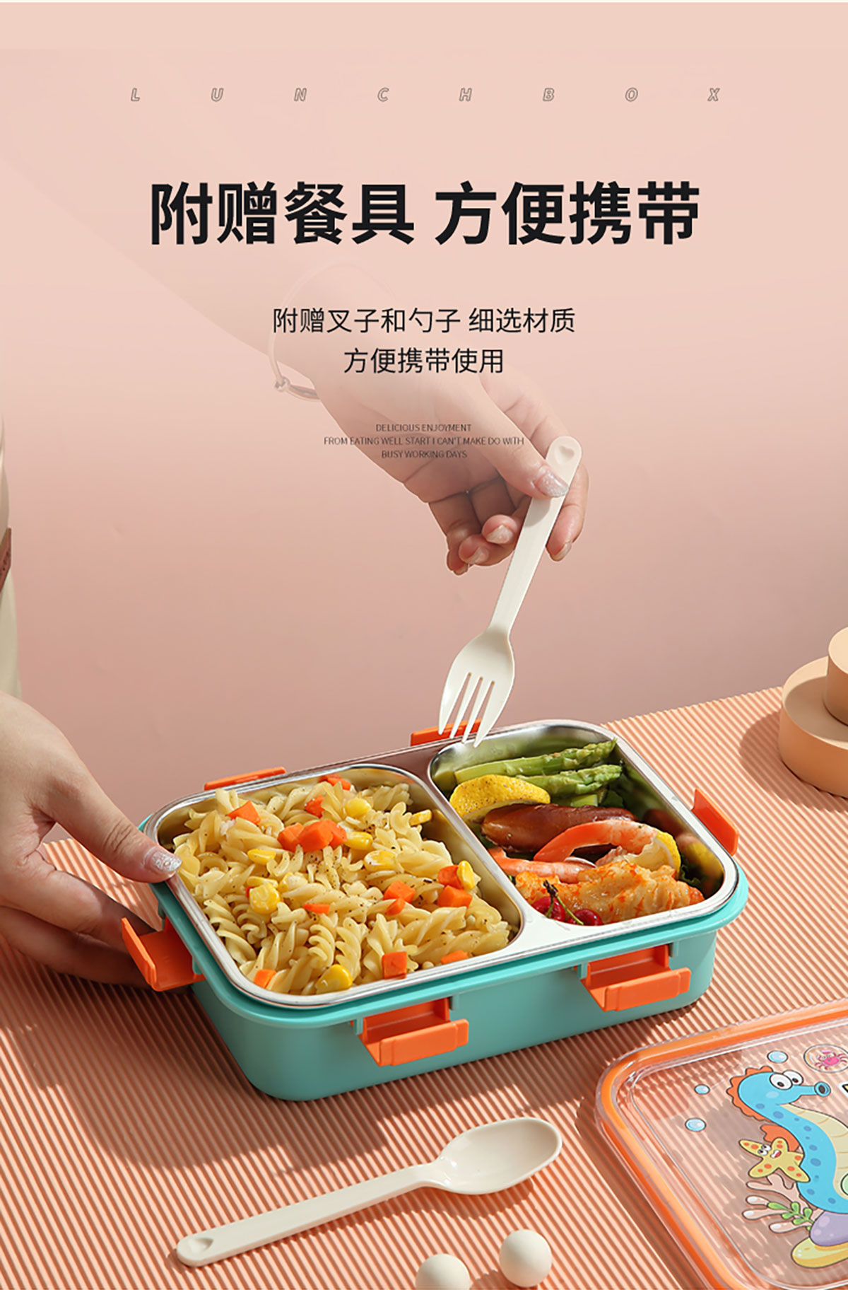 UV 卡通不銹鋼一格/二格/三格/三格帶碗餐盒(配PP叉子和湯勺)