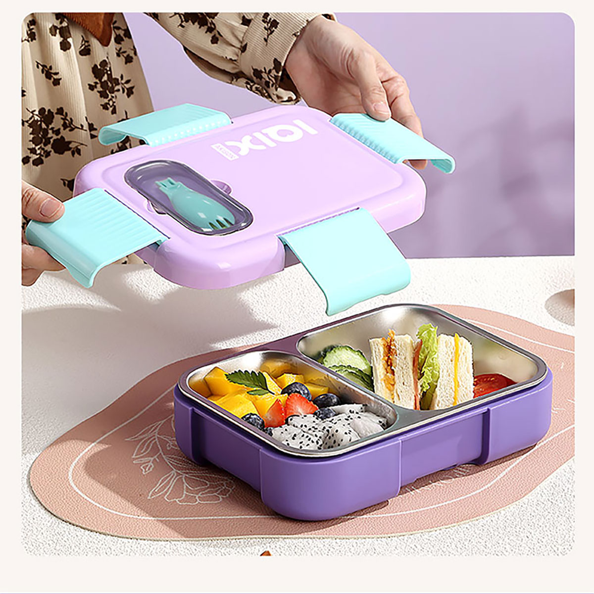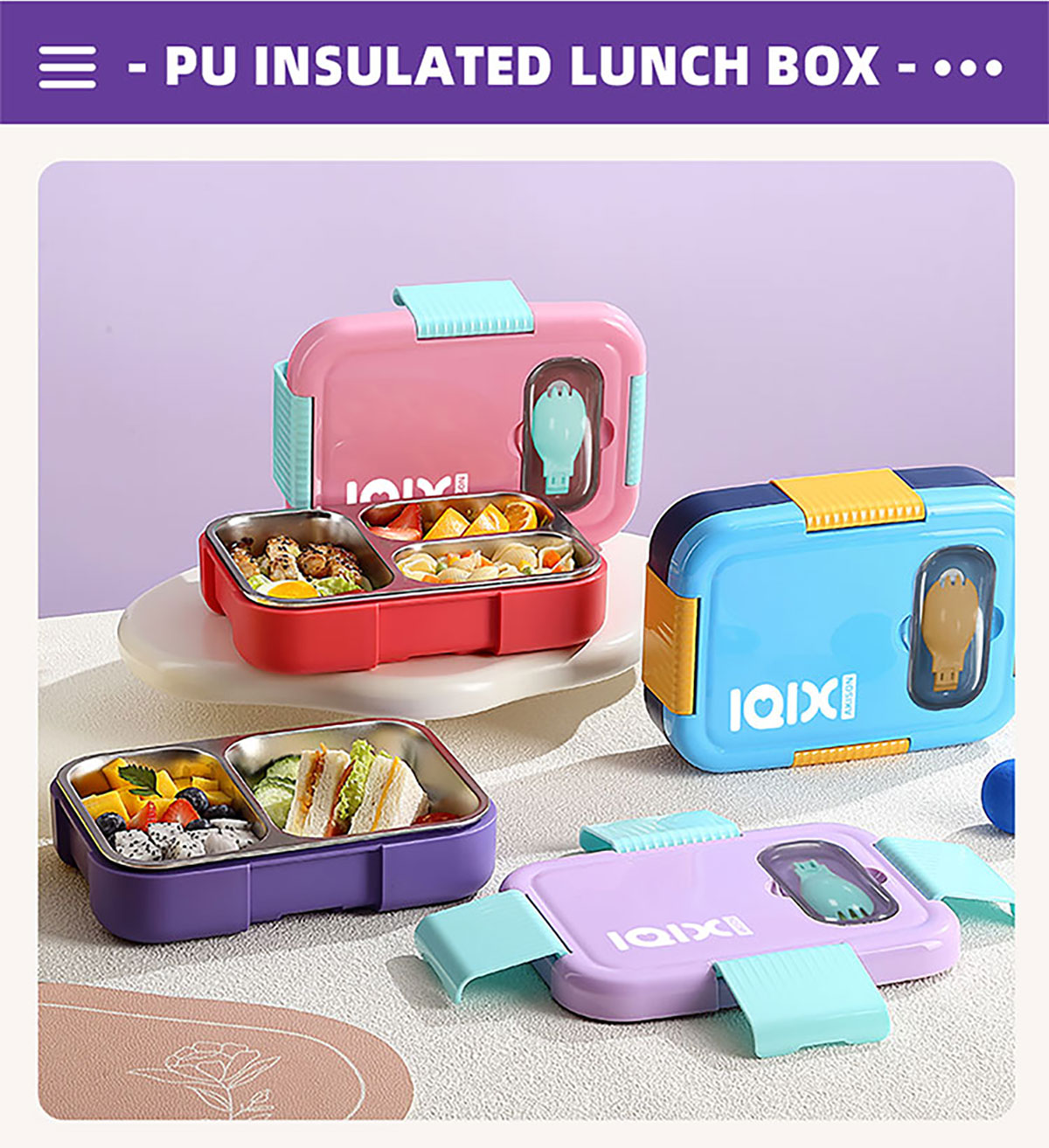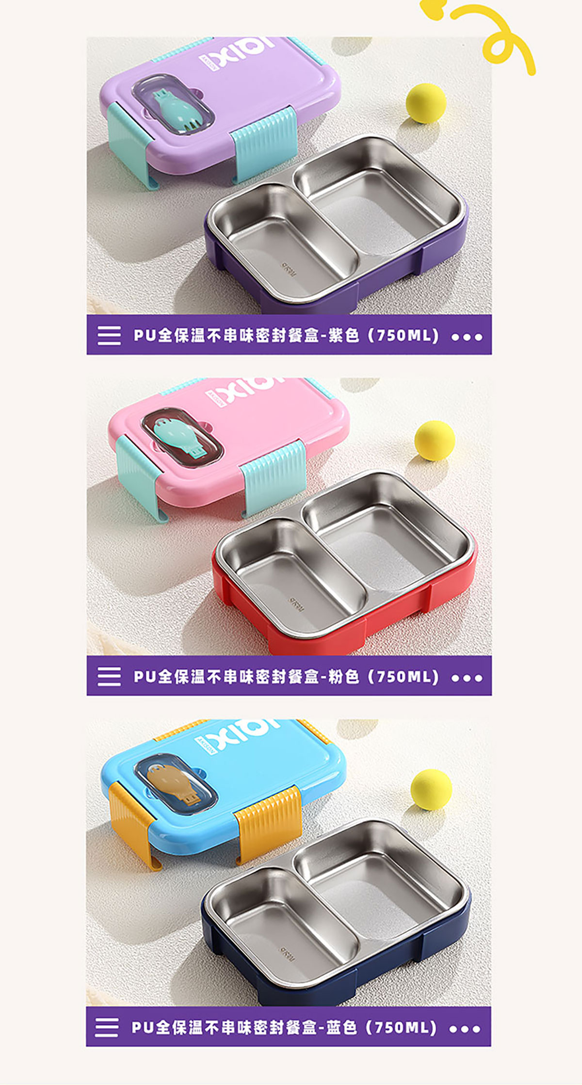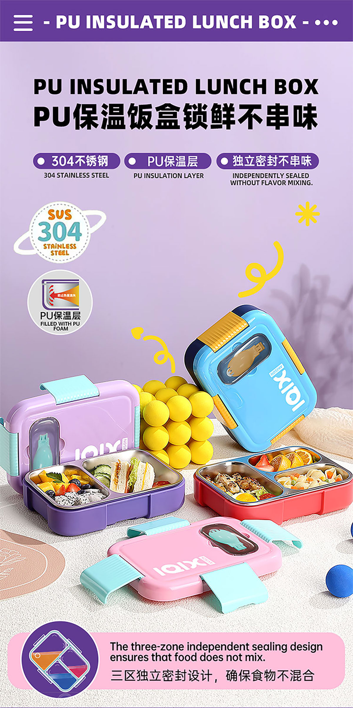 PU全保溫不串味密封餐盒(不銹鋼3格/2格+PP折疊勺)