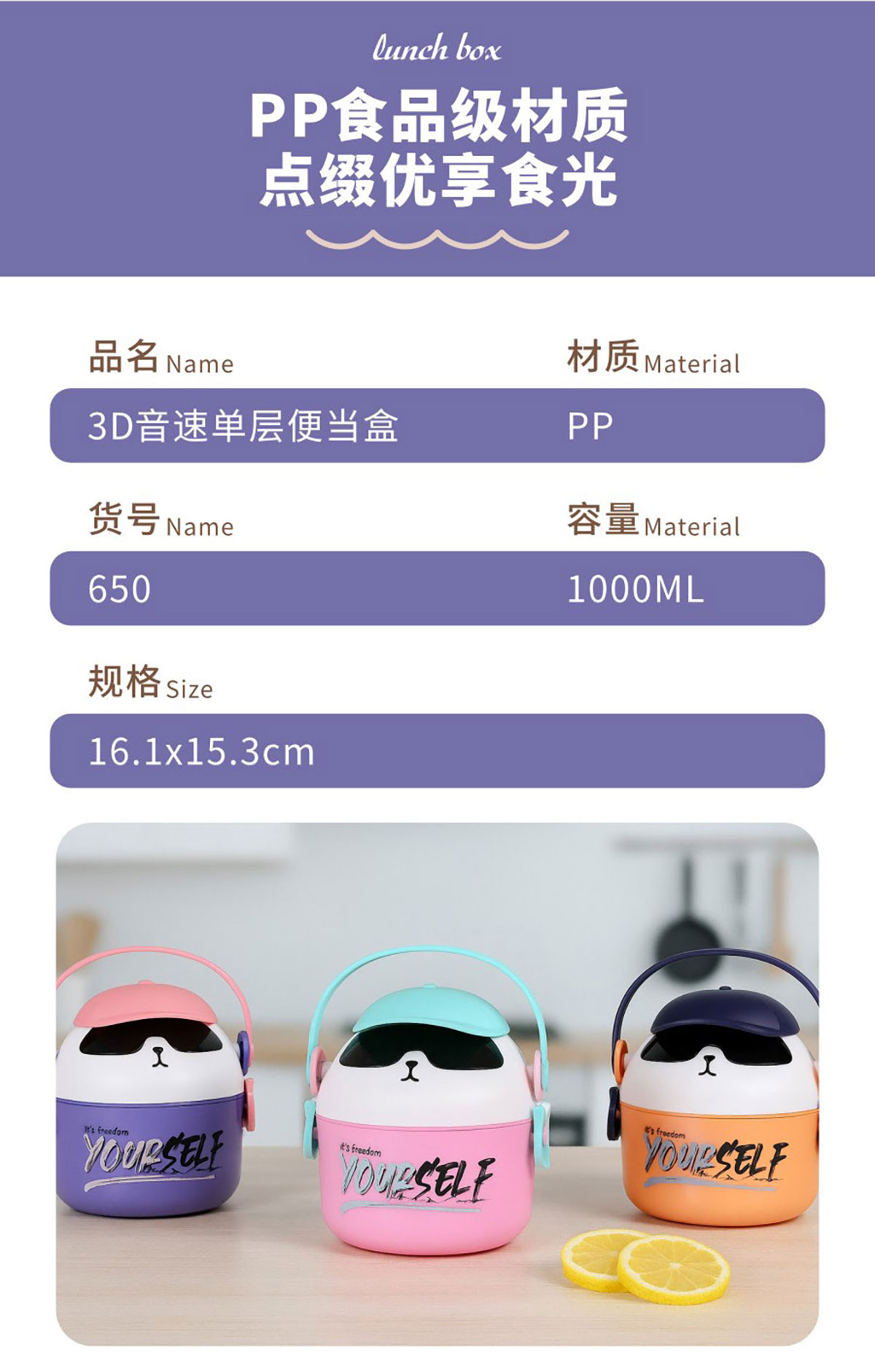 3D音速單層/雙層/雙層分格/三層(通格+分格)便當盒1000ml/湯杯400ml