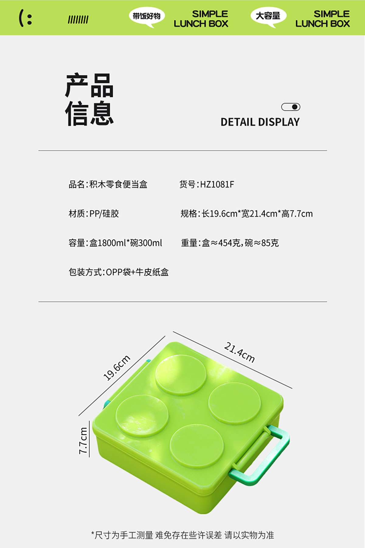 Size: 飯盒:196*214*77mm/1800ml 碗:直徑106*高65mm/300ml