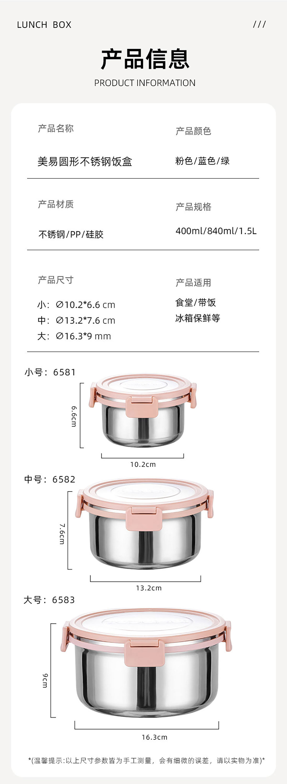 圓形內(nèi)嵌不銹鋼餐盒(小號(hào)/中號(hào)/大號(hào))(201#)