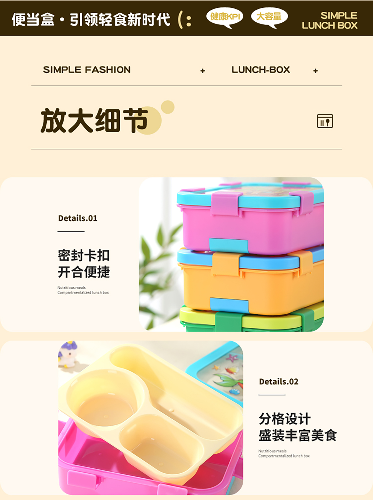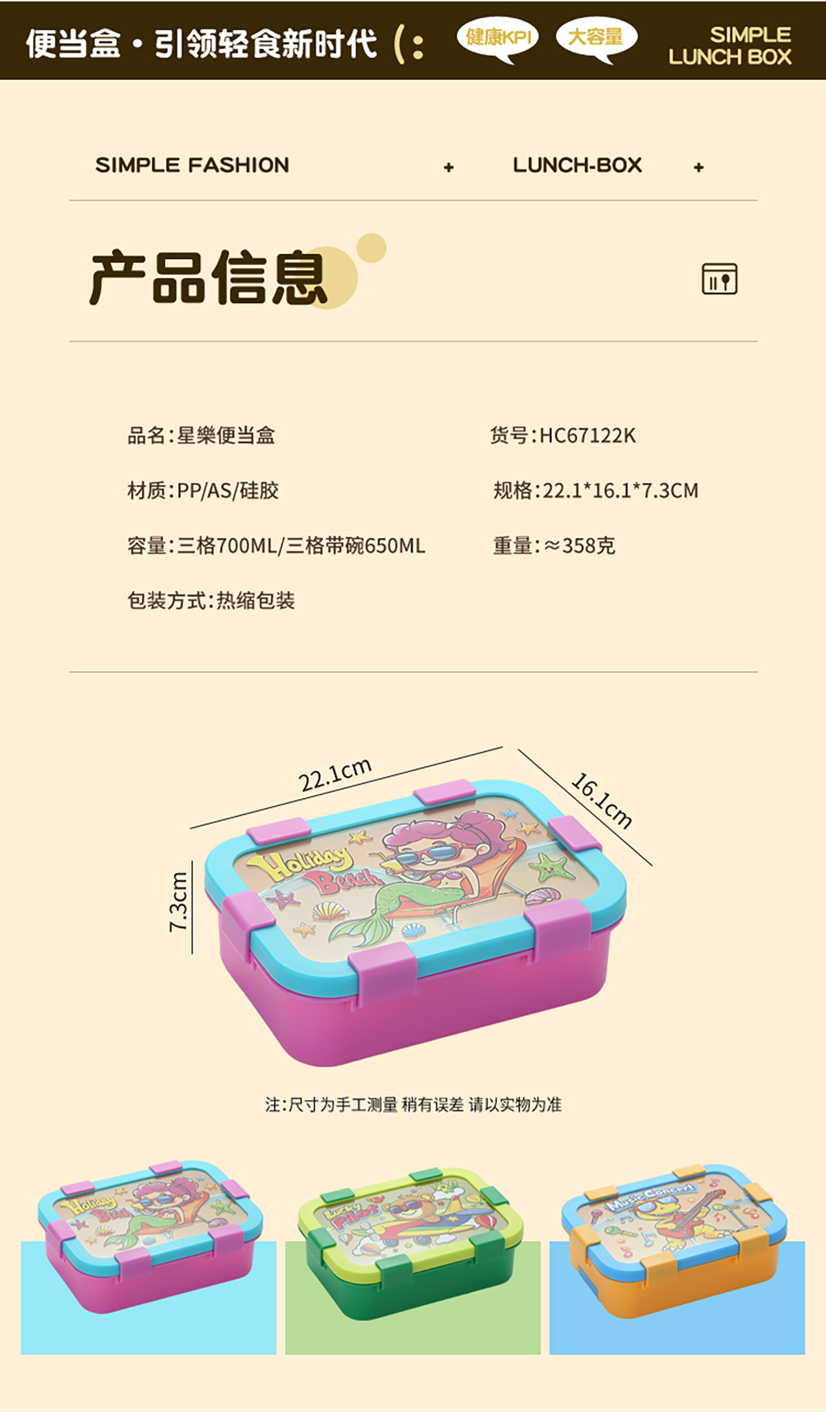Size: 221*161*73mm(三格700ml/三格碗型650ml)