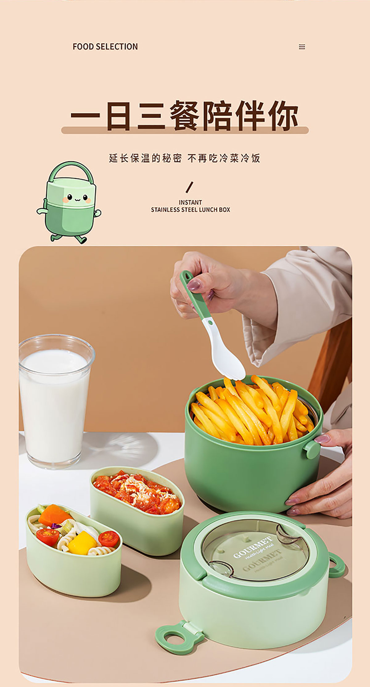 圓形分格飯盒(矮)1200ml