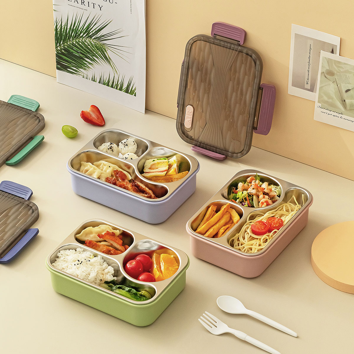 小簡(jiǎn)三格不銹鋼飯盒
