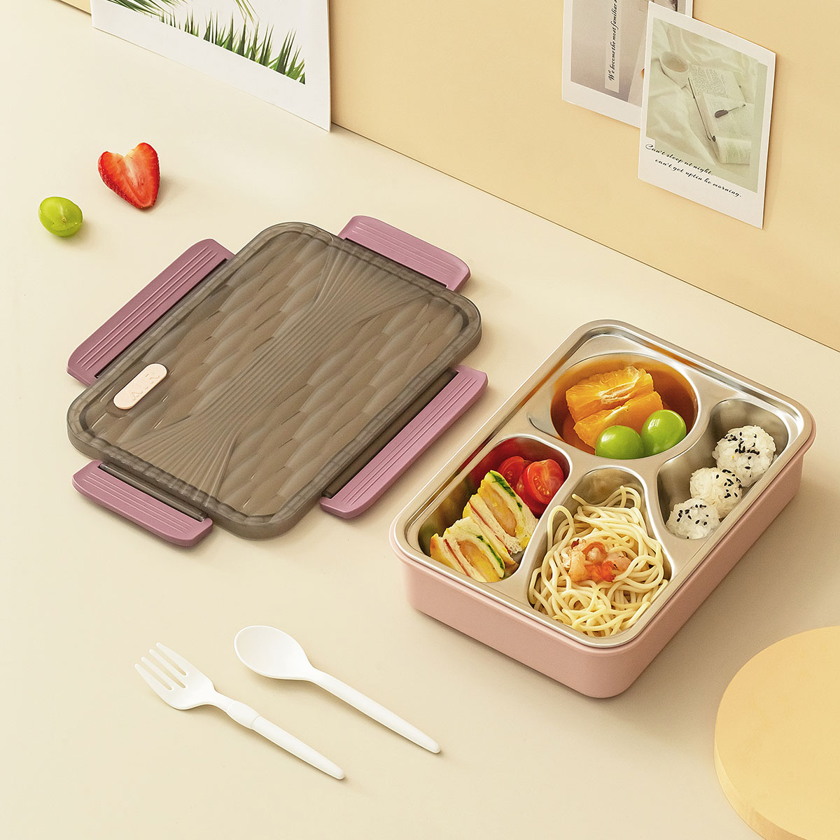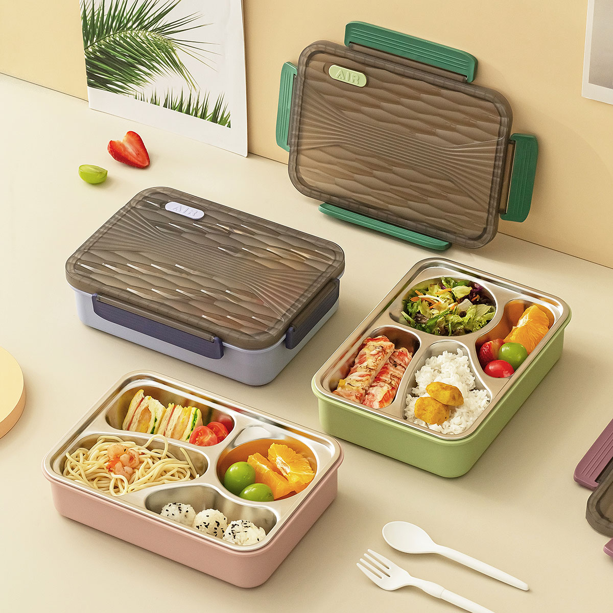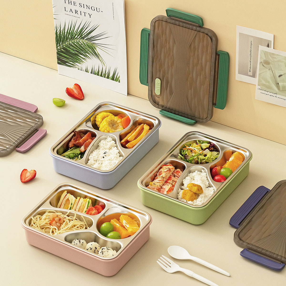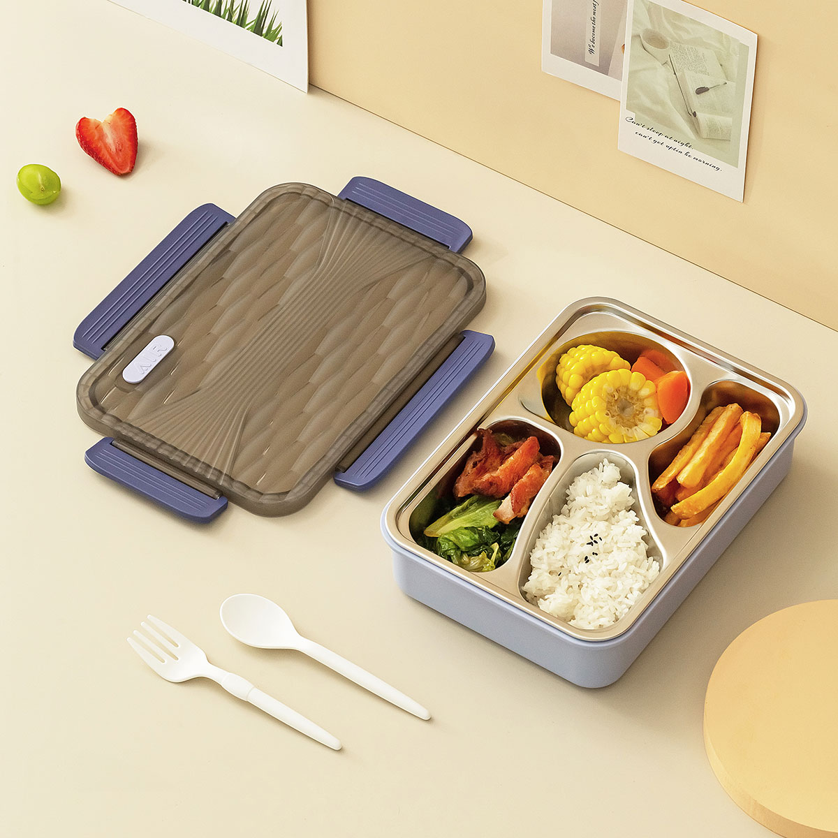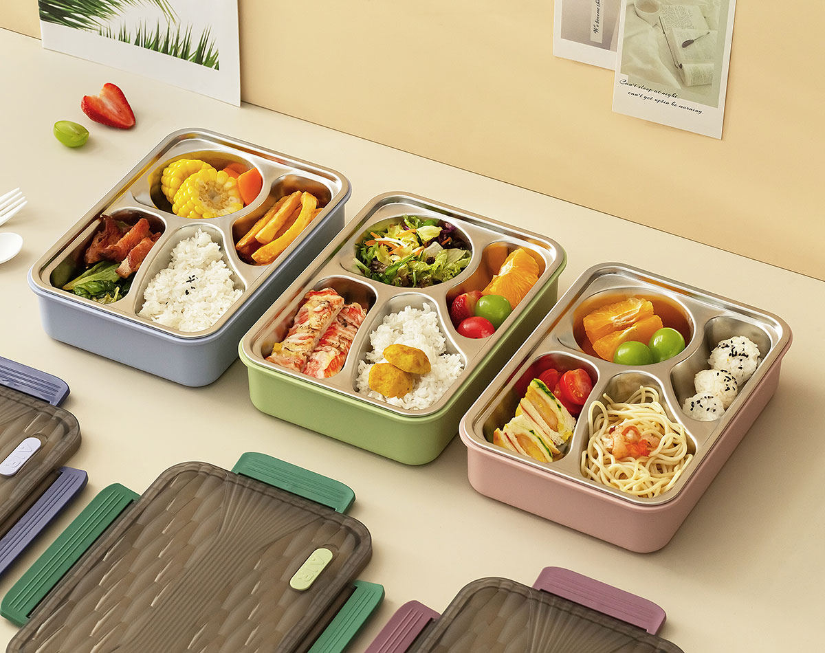 小簡四格不銹鋼飯盒