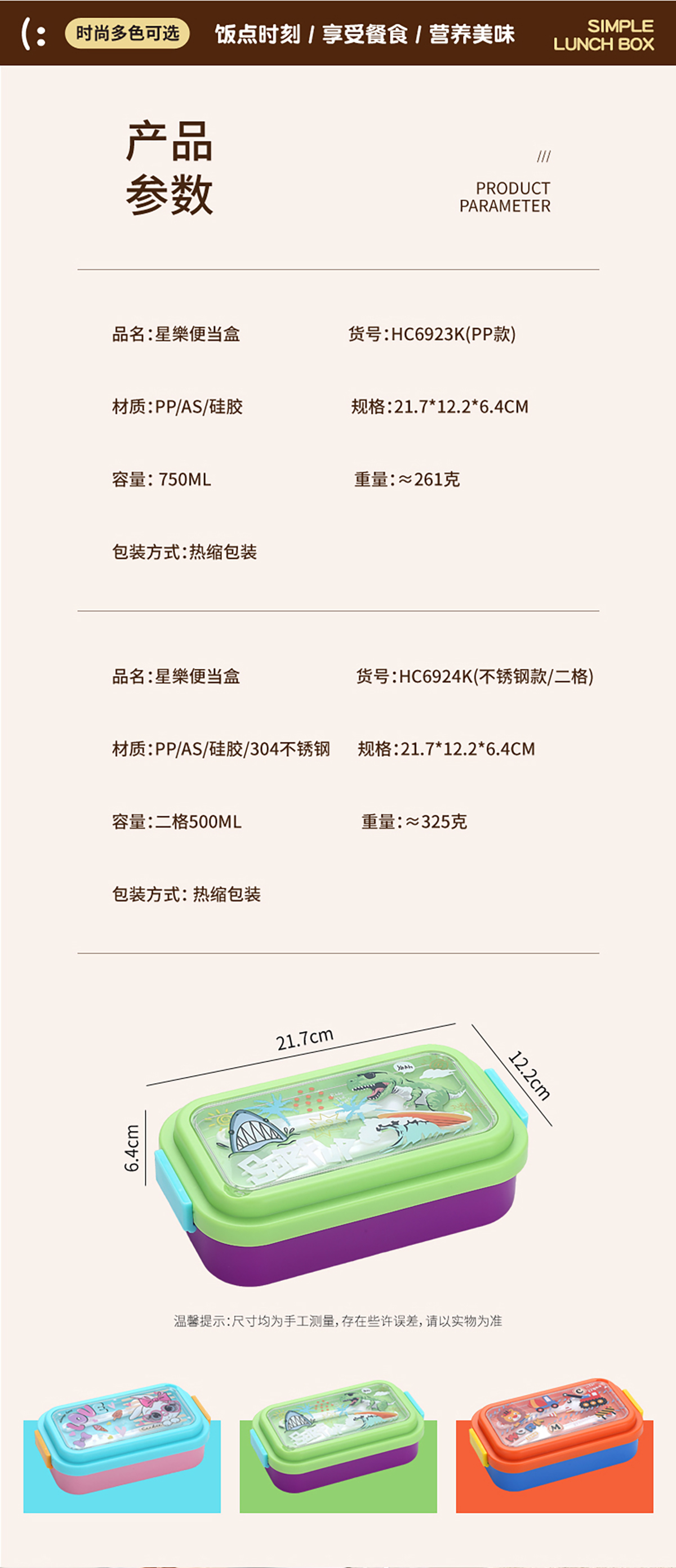 星樂(lè)卡通便當(dāng)盒PP款750ml/不銹鋼款500ml